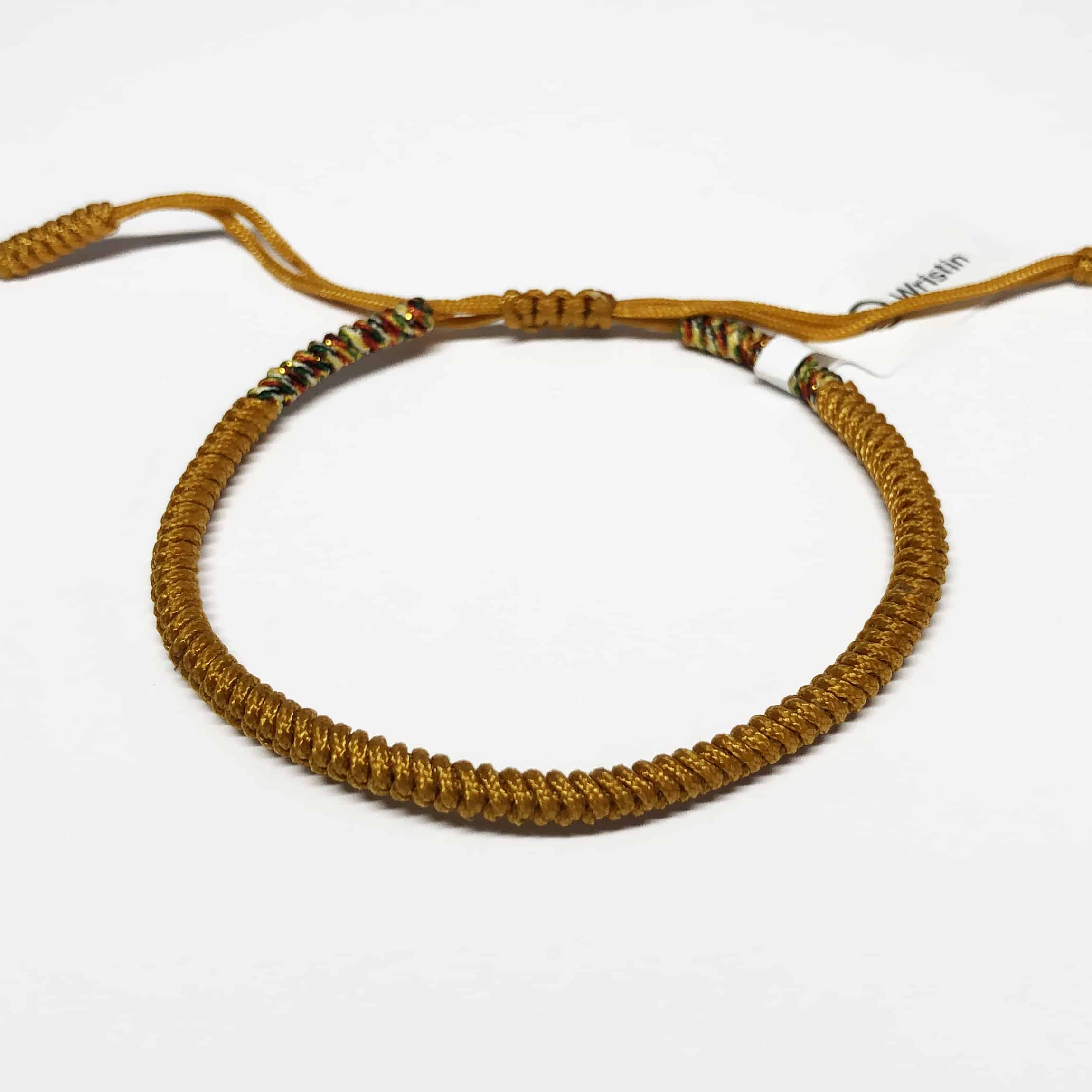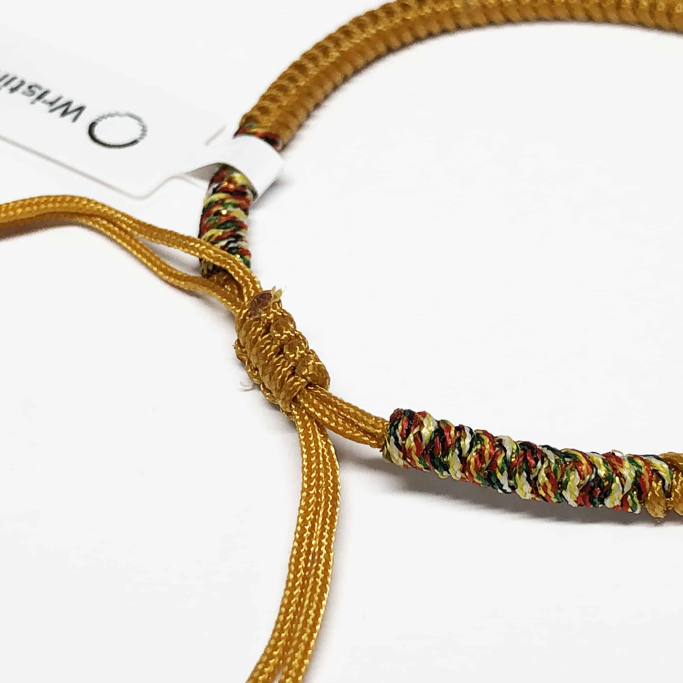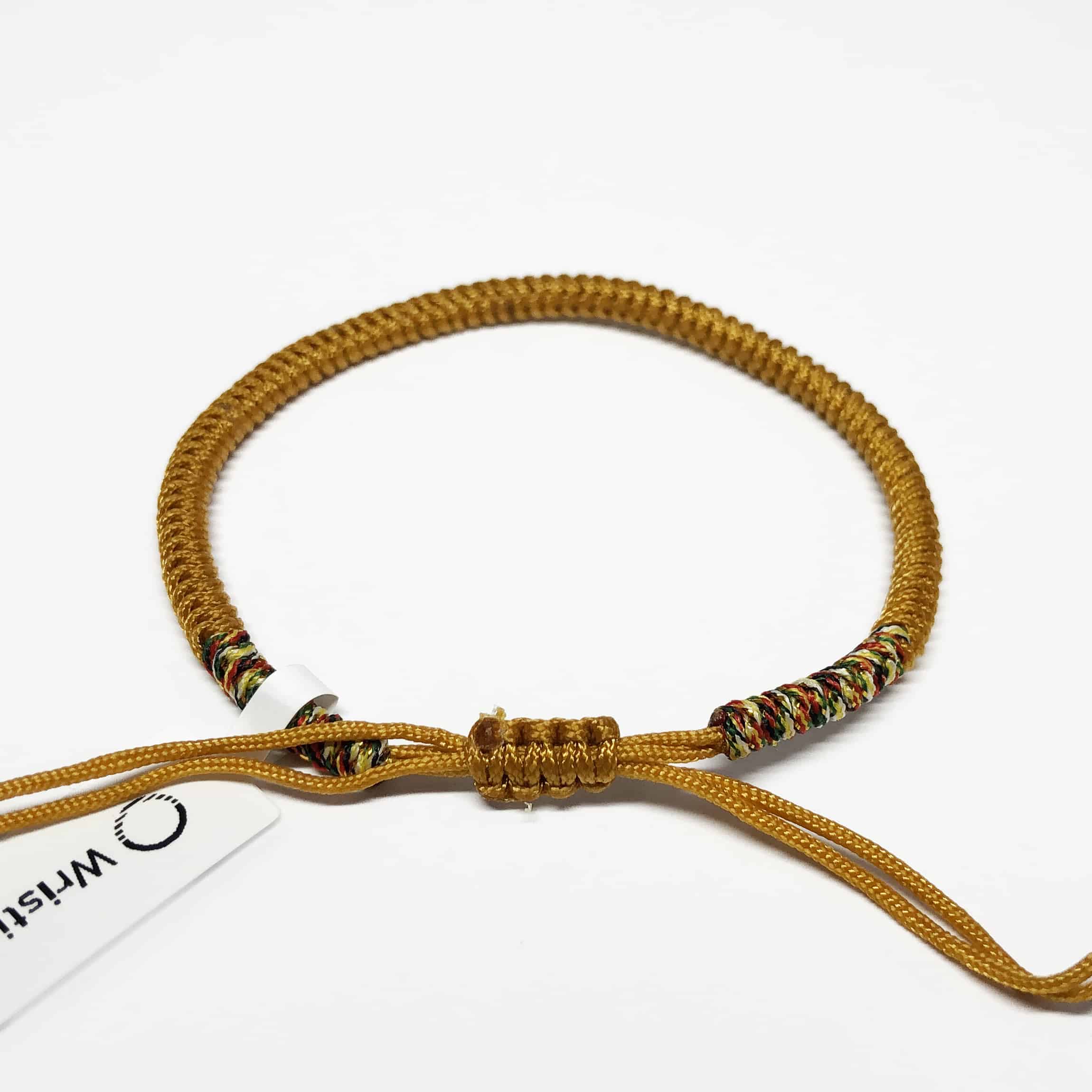 Tibetaanse monniken vlechten dit gelukskarmbandje binnen 50 minuten in elkaar als gebedsritueel. Daarom draag je het armbandje traditioneel aan de linkerkant van je lichaam. Dit is de kant die de positieve energie ontvangt.